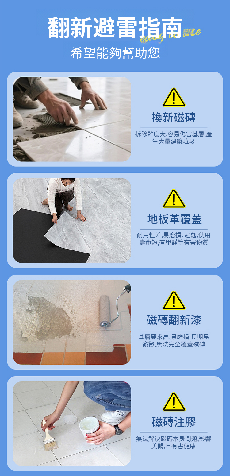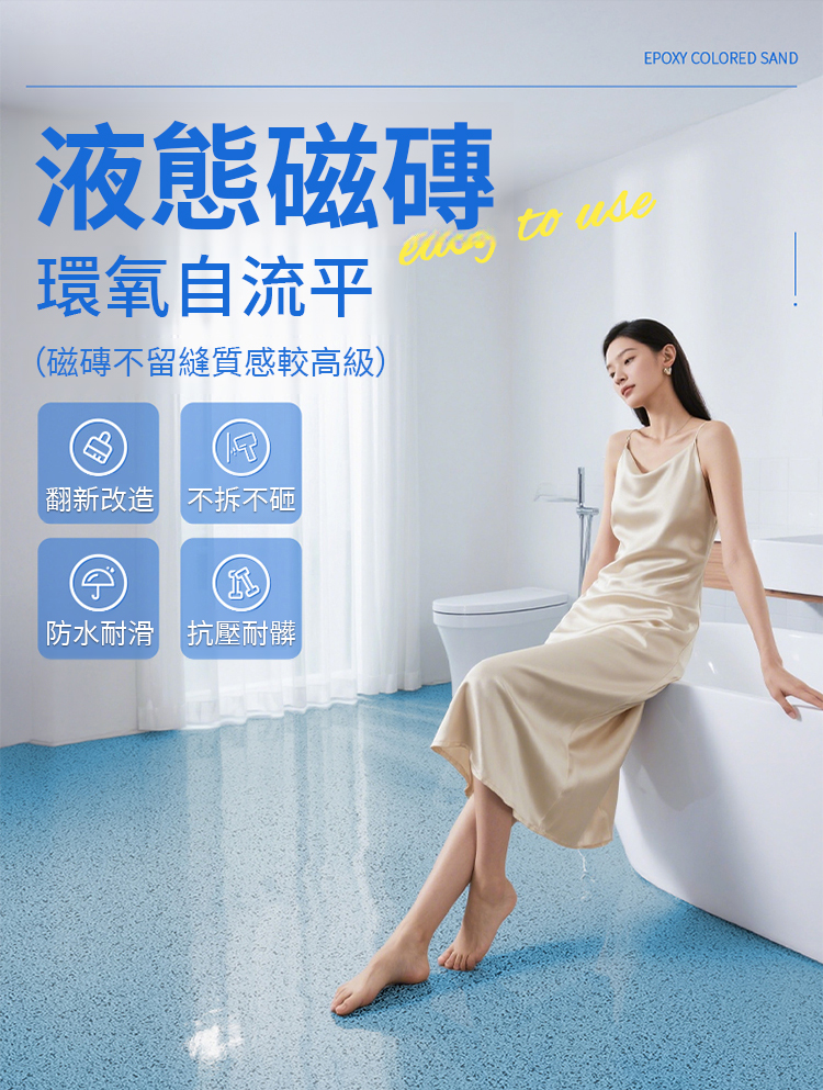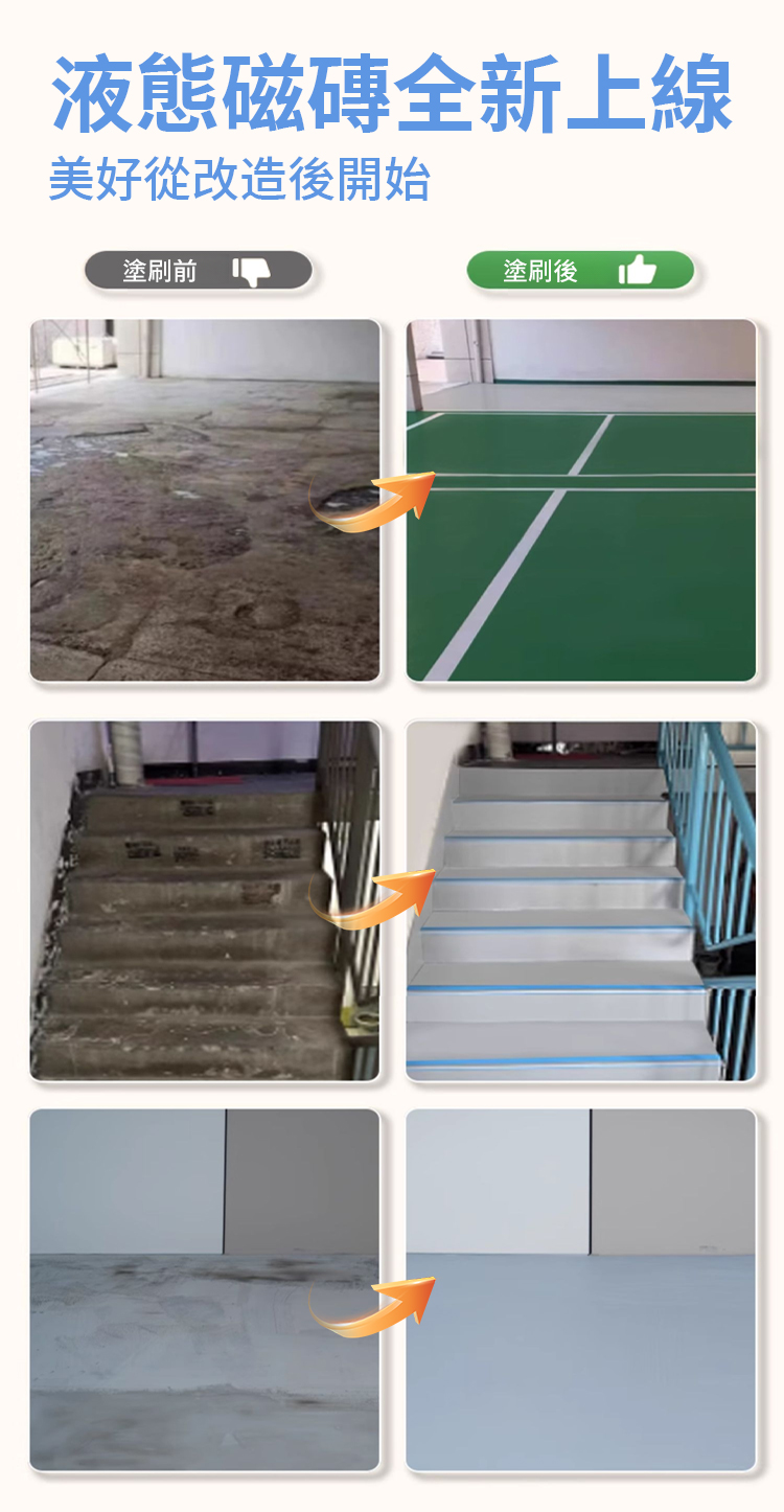 比瓷磚價格便宜一半,一桶可以刷40平方,一推一拉,6個小時凝固,耐磨耐刮,防水防滑,50年不起皮,經濟又美觀