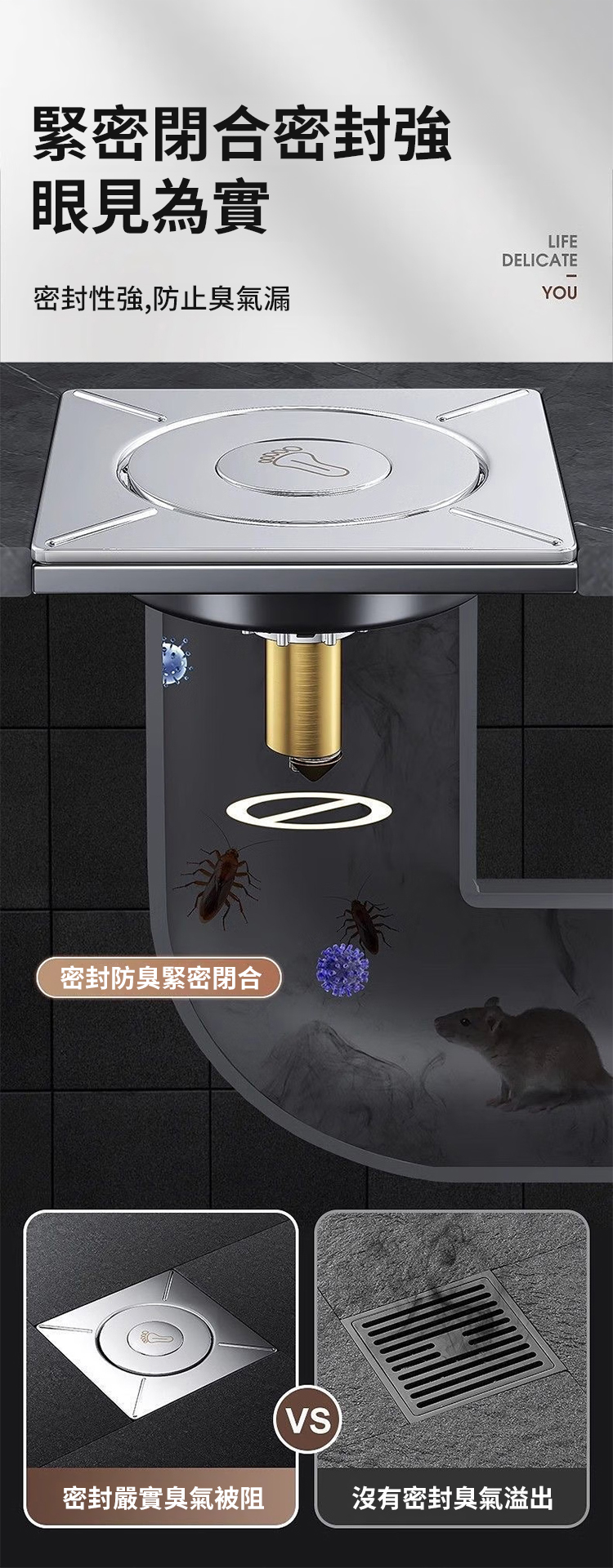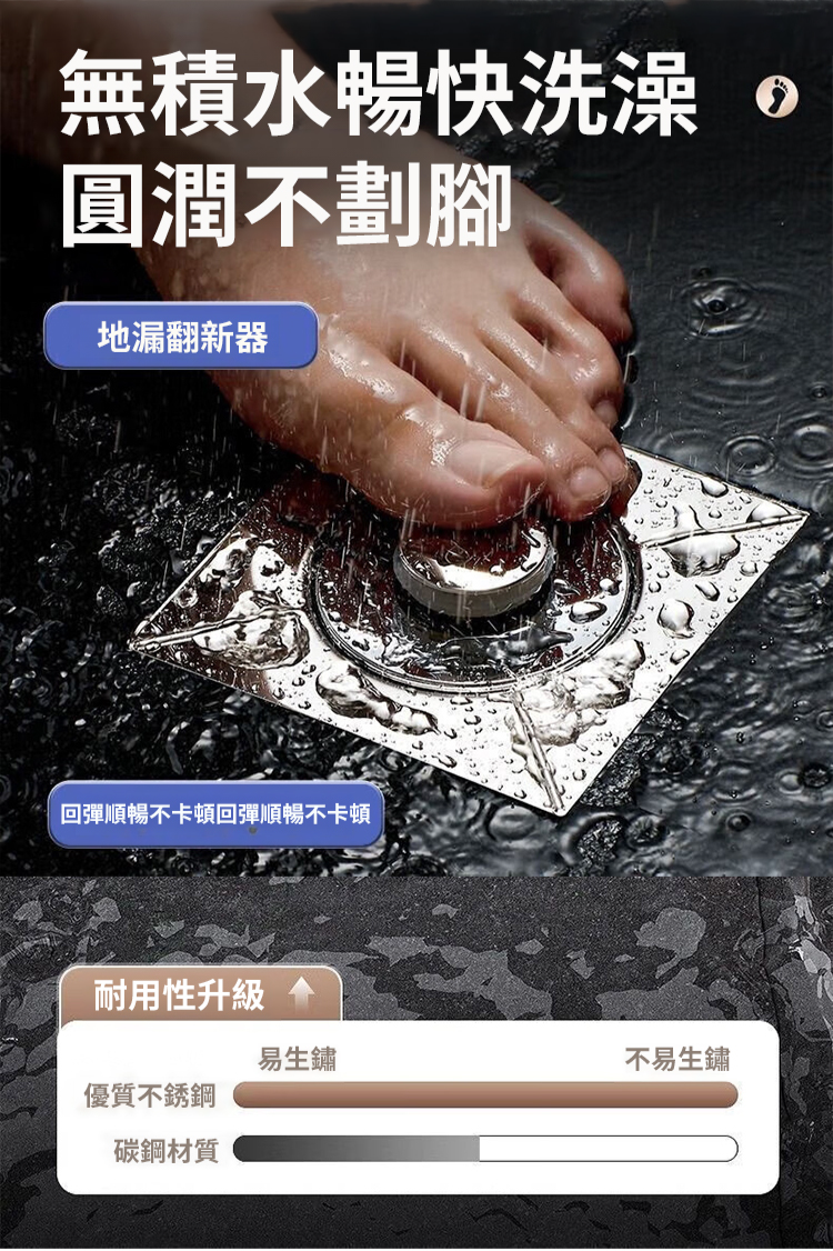 地漏一定要用這種防蟲防臭防堵的,極速排水,腳踩設計,無需彎腰,20年用壞免費換新,適合各種地漏